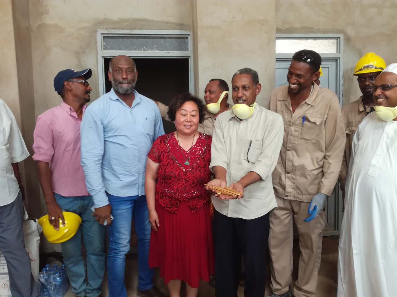 非洲200噸金礦于2017.7.17日第一批金條順利出爐,礦業部,安全部,礦主及金鵬和在場的所有的人都露出幸福笑臉,金鵬公司在茫茫沙漠中又建造一座金庫!