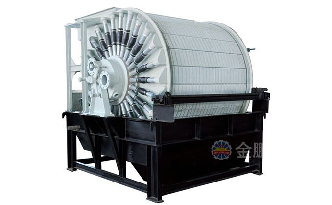 磁濾機(jī)的給料槽在上部,由于上部給料,濾餅又在磁場(chǎng)中形成,所以濾餅中精礦按粒度分層現(xiàn)象明顯,并呈放射狀分布。濾餅不但厚而且透氣性好,易于脫水。